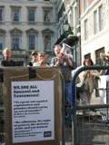 The picket was supported by Polo Democrático UK, Green Left, Latin American Workers Association, Workers Against Climate Change, Climate Camp, ICEM (International Federation of Chemical, Energy, Mine and General Workers' Unions), SNTT (Sindicato Nacional de Trabajadores del Transporte) Colombia, the Colombia Solidarity Campaign plus individuals from Amnesty International, Sheffield Cuba Solidarity Campaign and the Coordinadora Latinoamericana.