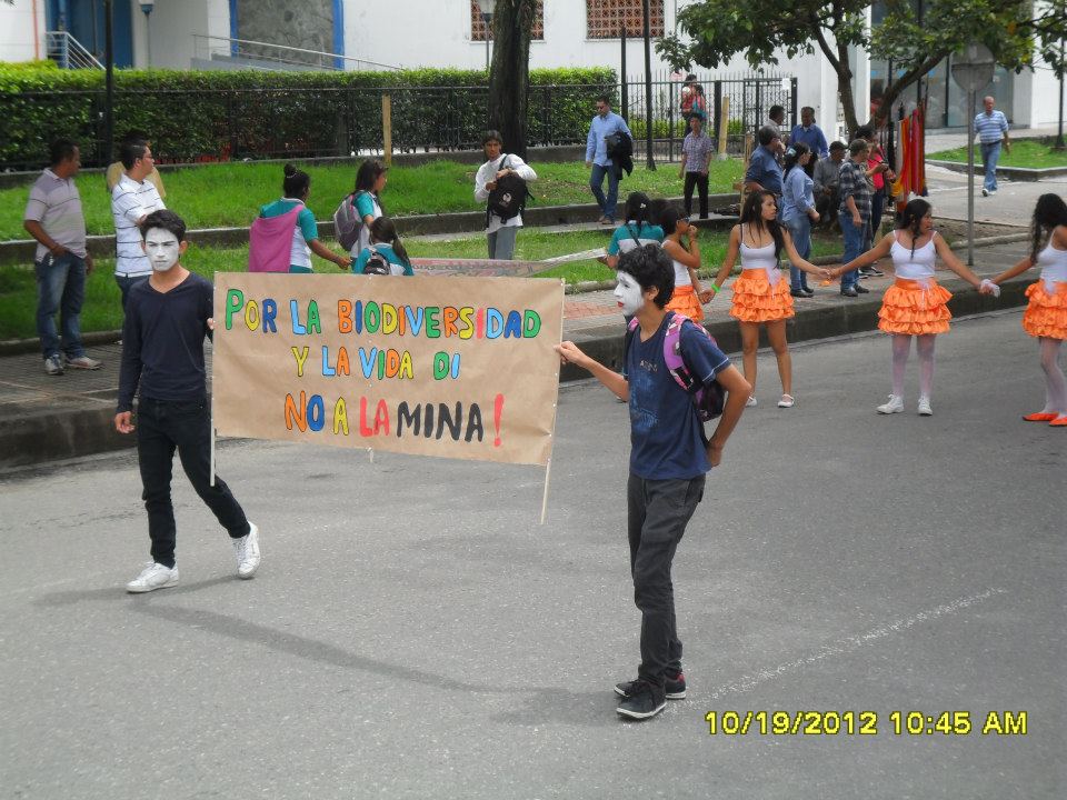 Thousands of Colombians took to the streets of Ibagué, Tolima, yesterday to express their opposition to the proposed AngloGold Ashanti La Colosa gold mine. Here are some photos of the Fourth March/Carnival in Defence of Water and Life.