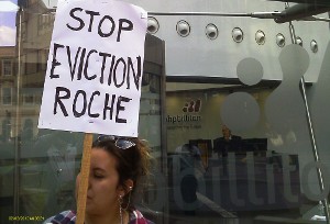 Picketers in London demanded that the eviction plans be scrapped altogether, as they represent a ‘gun to the community’s head’ in the negotiations. Protesters called for respectful, good faith negotiations leading to a just and decent resettlement agreement with villagers at Roche.